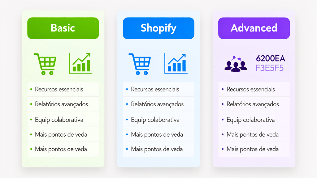 O Shopify oferece três planos principais para e-commerces:
