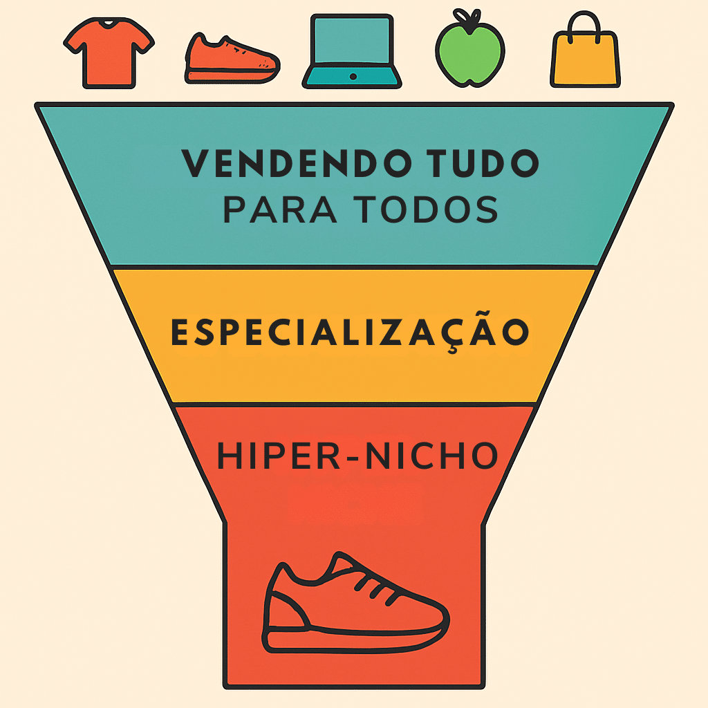 - Hiper-Nicho: Não venda “roupas”. Venda “roupas de algodão orgânico para bebês com pele sensível”. A especificidade te torna a única opção relevante para um público apaixonado e disposto a pagar mais.